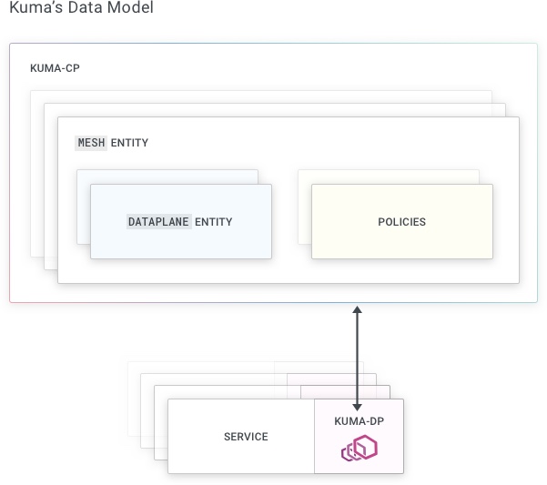 kuma-dpbinary runs on each instance that is part of the mesh. This binary spawns the following subprocesses:Envoyreceives configuration from the control-plane to manage traffic correctlycore-dnsresolves Kuma specific DNS entries
